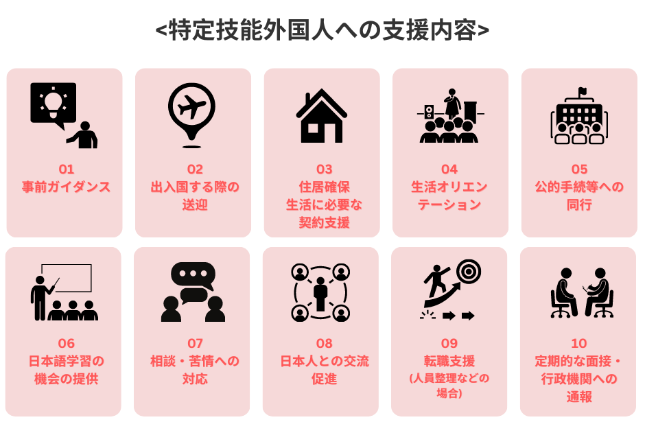 特定技能外国人を雇用する企業に義務づけられている以下の支援内容を